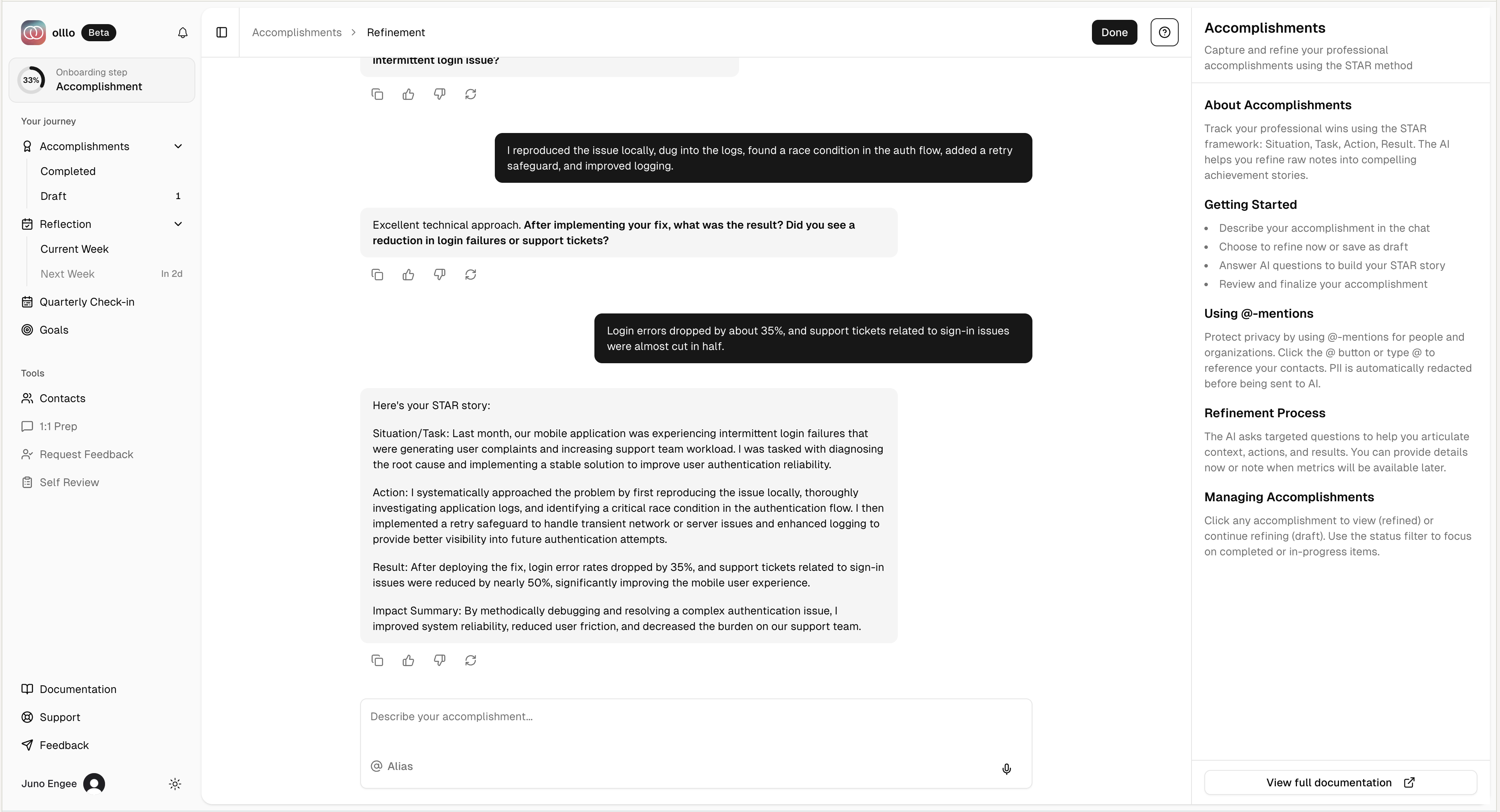 Capture your first accomplishment using our AI-powered STAR transformation.