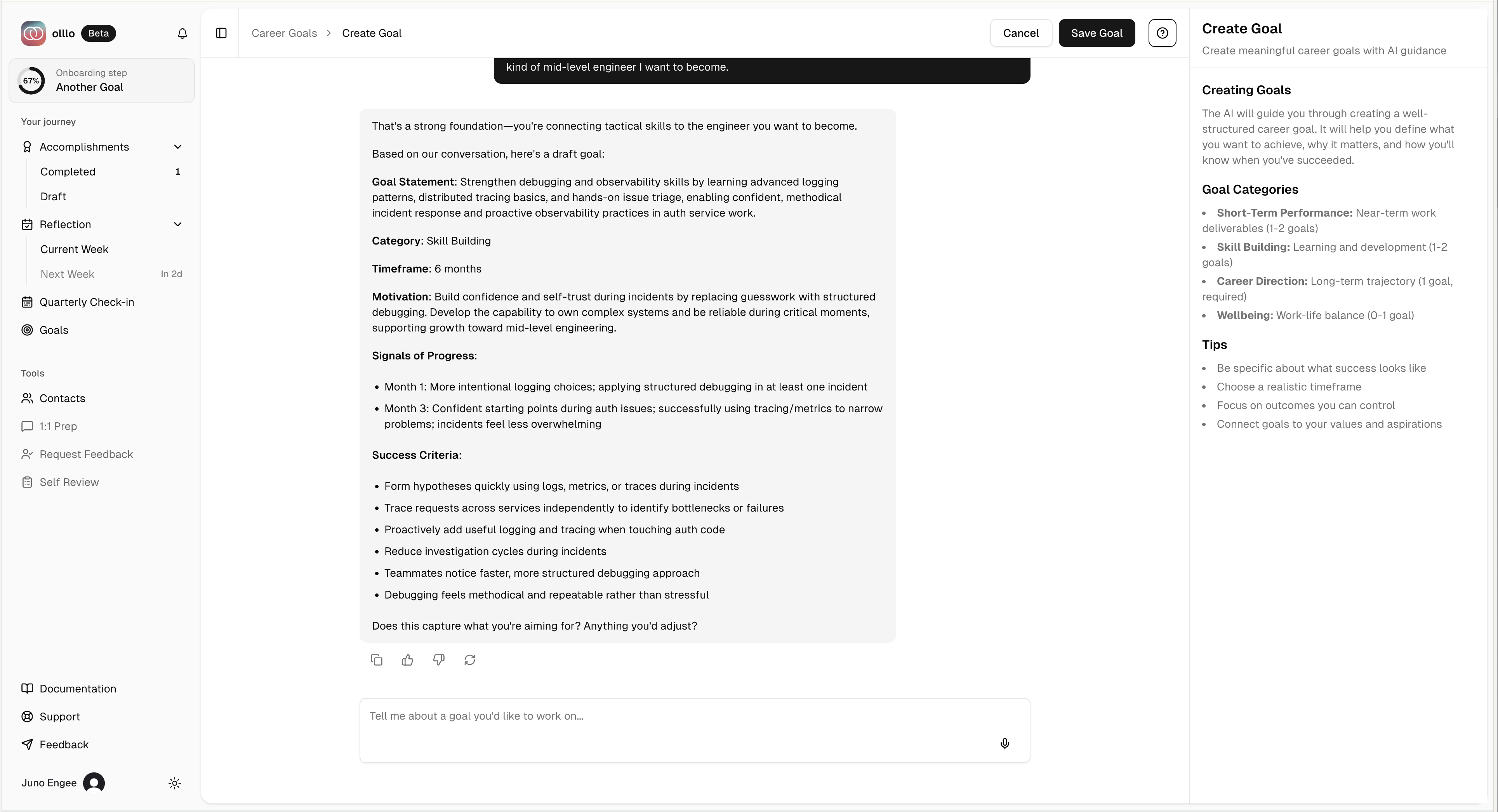 - Goal creation conversations