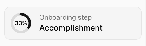 A donut chart in the sidebar shows your onboarding progress. Each completed step fills a portion of the chart, and you can click on any step to navigate directly to it (completed steps and the current step are clickable).